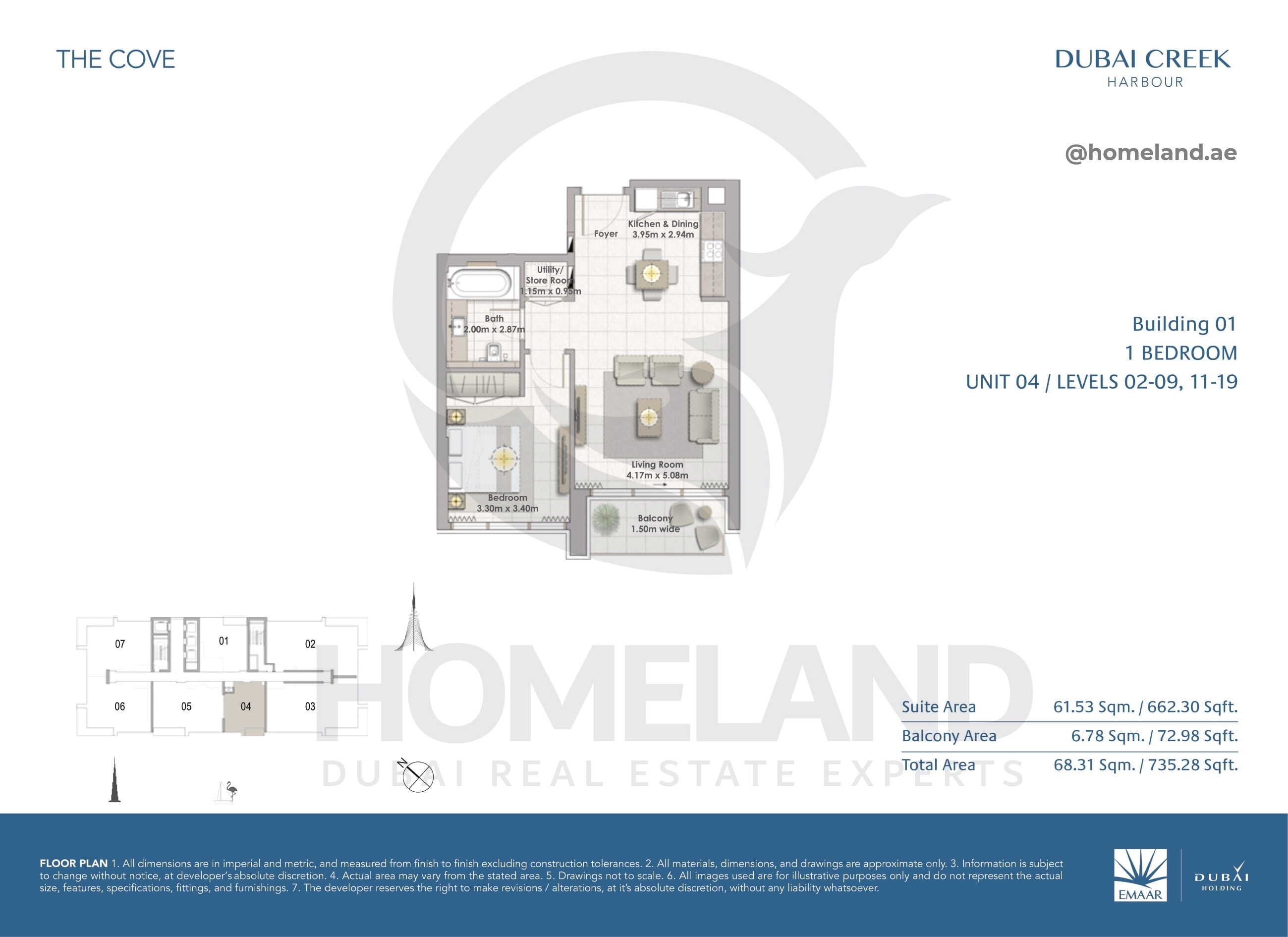 The Cove, Building 1, 1 BR, Unit 04, Level 2-9 & 11-19, 735 SQFT | View |
