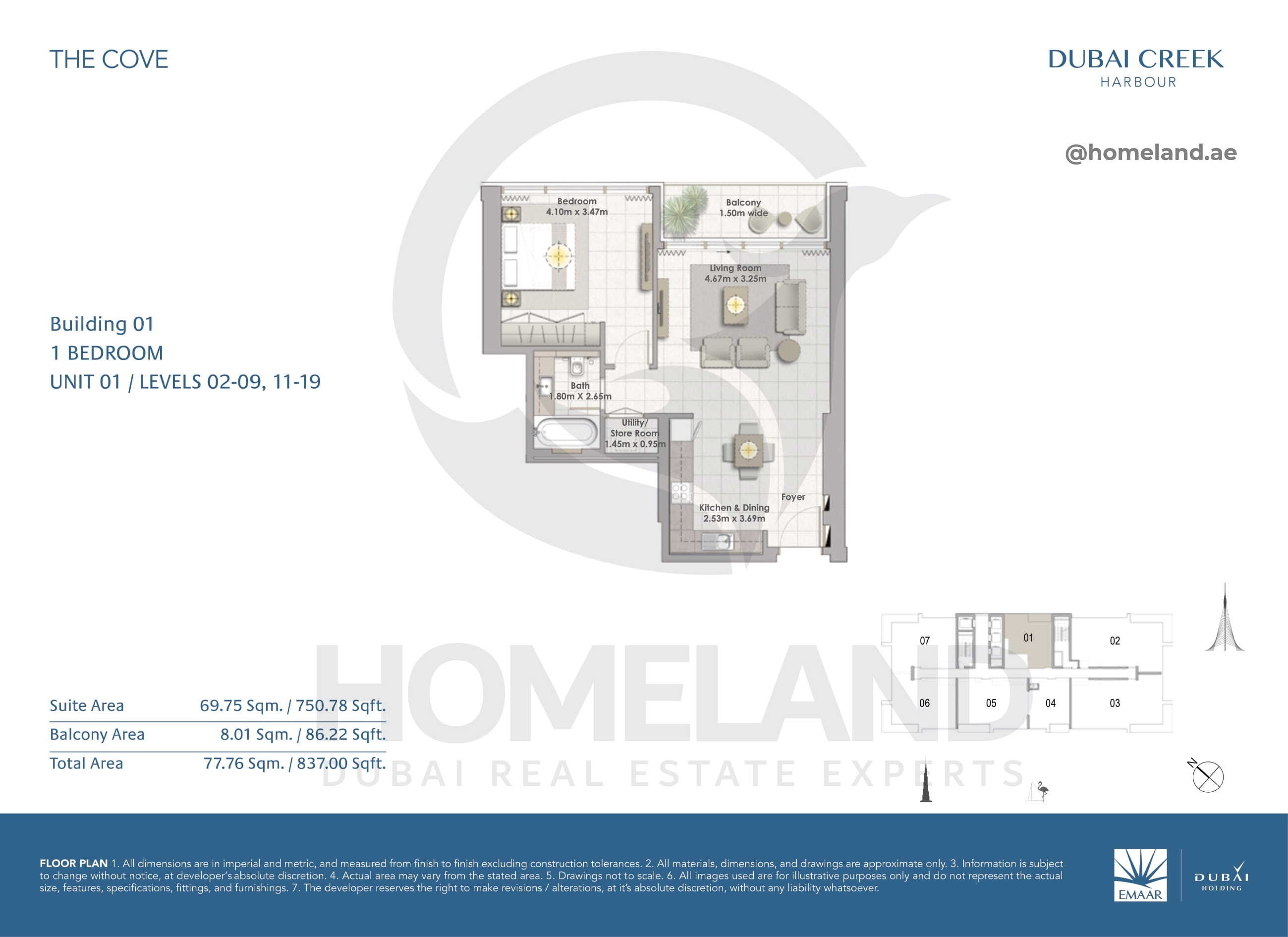 The Cove, Building 1, 1 BR, Unit 01, Level 2-9 & 11-19, 837 SQFT | View |